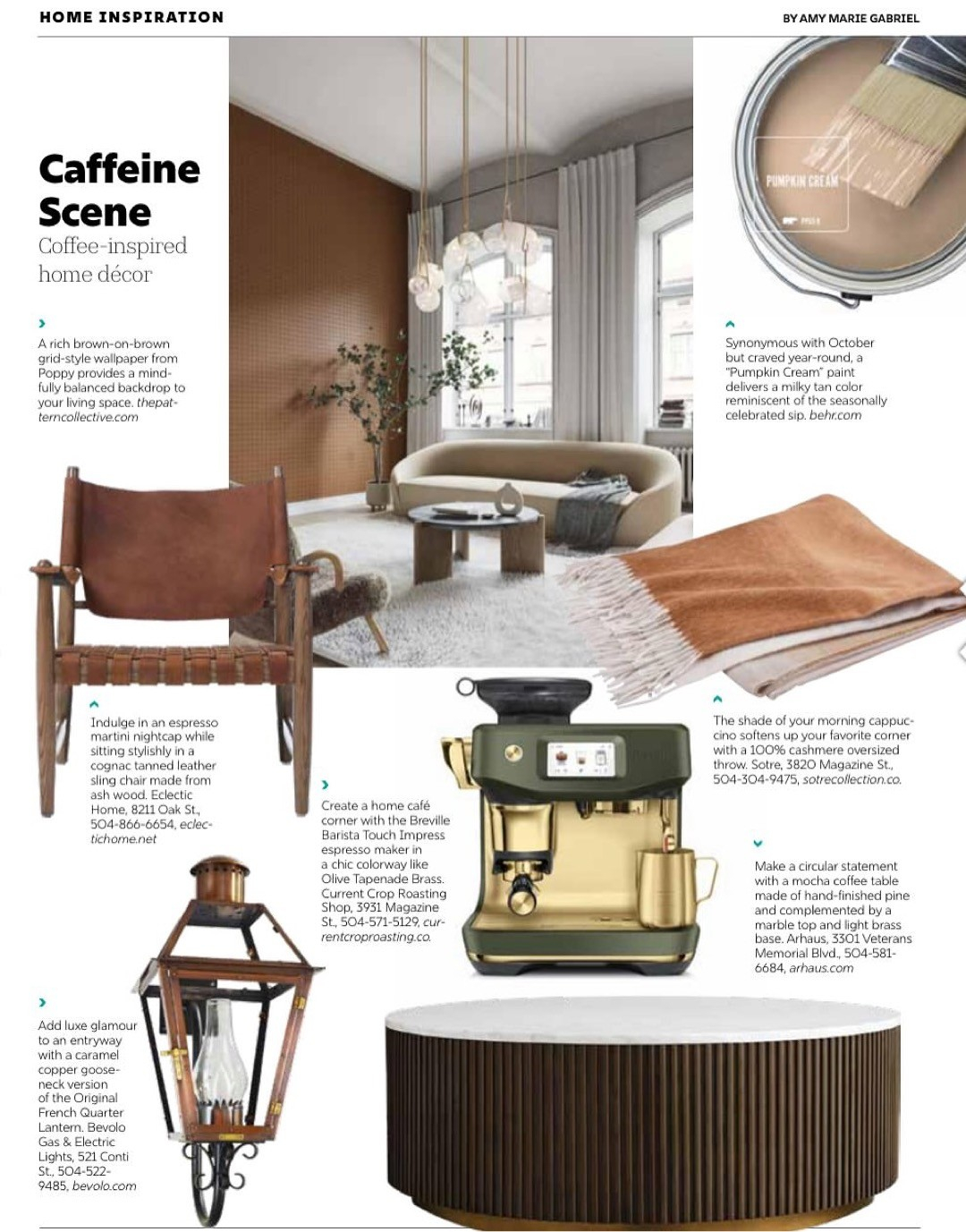 Free Design ServiceCoffee-Inspired Home Décor with New Orleans Magazine ☕✨ Add luxe glamour to an entryway with a rich, caramel copper French Quarter Lantern from Bevolo 🔥
