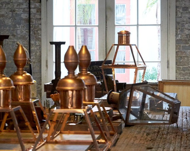 Wander over to our nearby Royal Street locations to explore even more. Visit our Interiors Collection for uniquely designed lighting and accessories, or stop by our Gaslight Museum and Showroom, where you can watch skilled craftsmen hand-build our signature copper lanterns on-site. It’s a rare look into a living tradition that’s been lighting the streets of New Orleans since 1945.