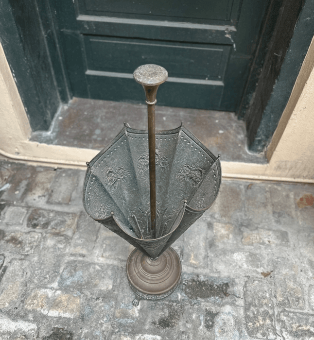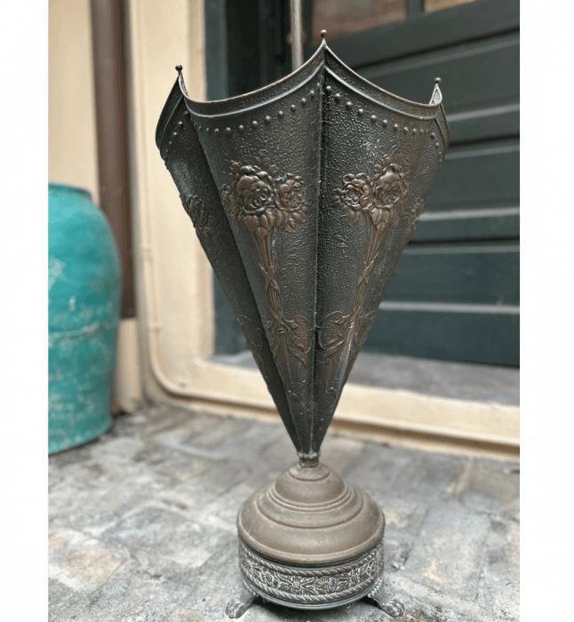 Vintage brass umbrella stand from circa 1920-1930 shaped as an umbrella with raised repousse motifs and... Read More