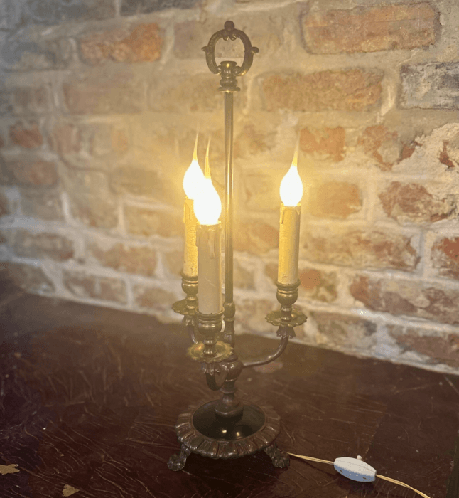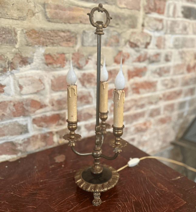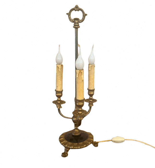 Vintage French Bouillotte Table Lamp with 3 Candelabra Arms
