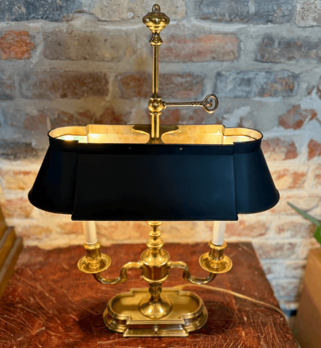 Vintage Brass Bouillotte Lamp with Black Metal Shade