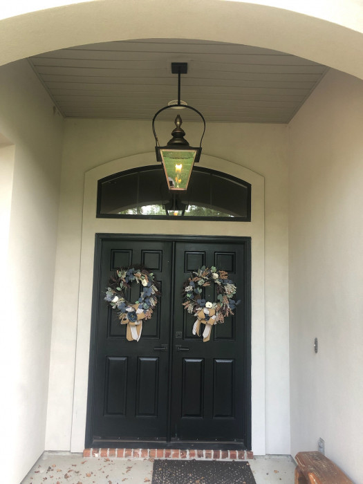 The delicate contour and horseshoe shape of the London Street Yoke Lantern creates a handsome hanging lantern that accurately complements formal architectural elements. Available in natural gas, propane, and electric.