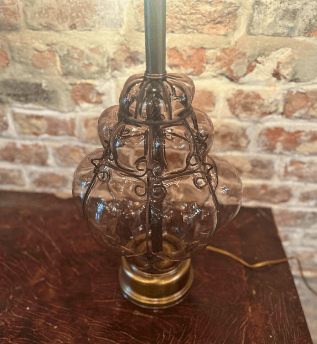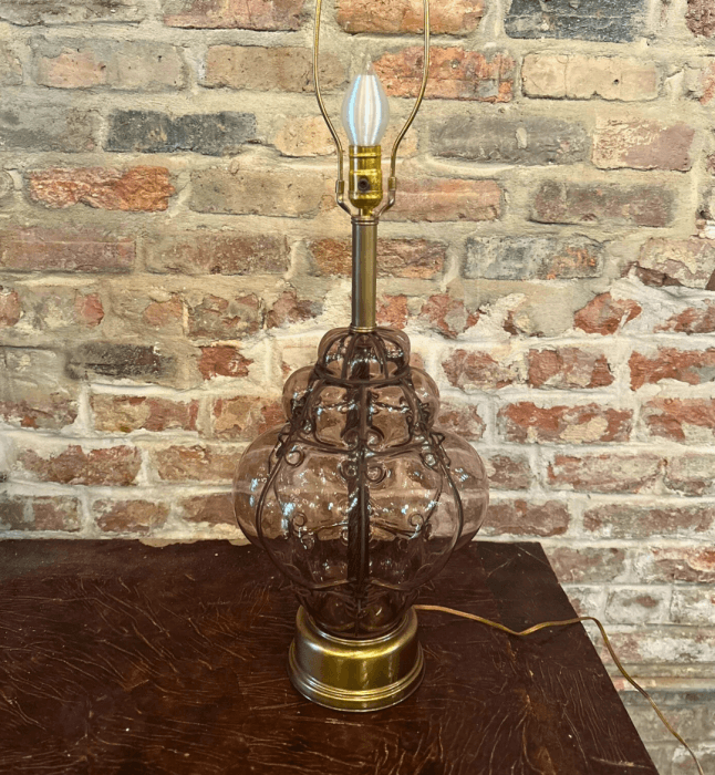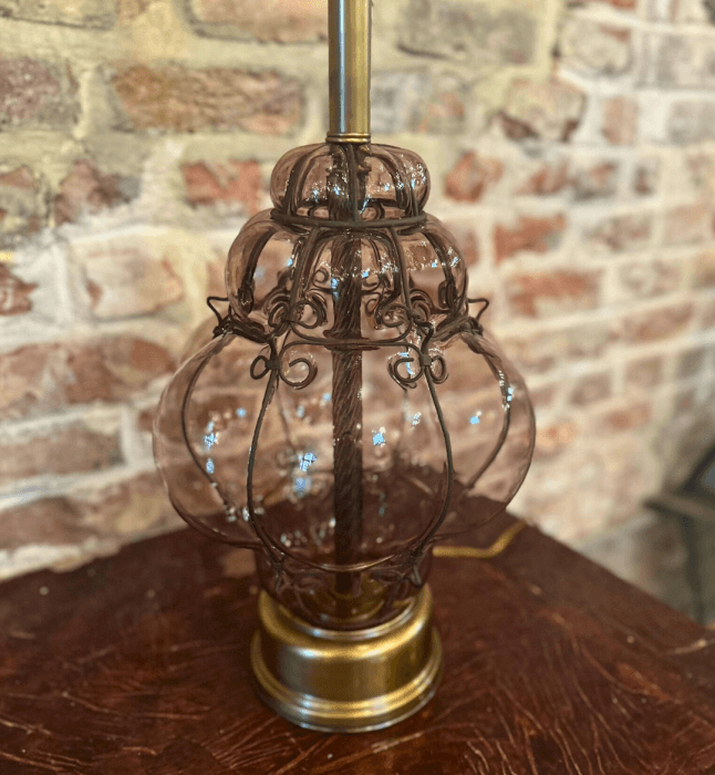 Vintage Marbro Murano Table Lamp with Iron Cage Design Around Blown Amethyst Glass. The handblown glass... Read More