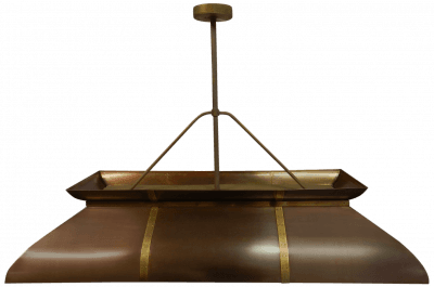 The Bevolo Billiards Fixture offers a distinctive blend of functional elegance and industrial style, making it an eye-catching centerpiece for any gaming or recreational space. Designed with a large copper shade accented by intricate brass detailing, this fixture exudes a refined, handcrafted appeal. The sturdy wrought iron stem not only ensures durability but also adds a bold, industrial element that complements its sophisticated design. With four bulbs placed beneath a frosted cover, it delivers ample, well-diffused lighting, ideal for illuminating billiard tables, gaming areas, or even casual dining spaces.