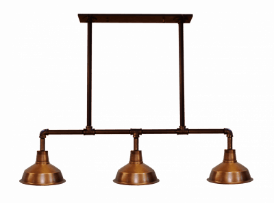 Effortlessly blending industrial style with our hand-spun copper pendants this charismatic Magazine Street Island pendant creates a modern farmhouse aesthetic. The industrial wrought iron bracket can be customized to any height. Pictured here with the Farmhouse Shade. Available in electric only.