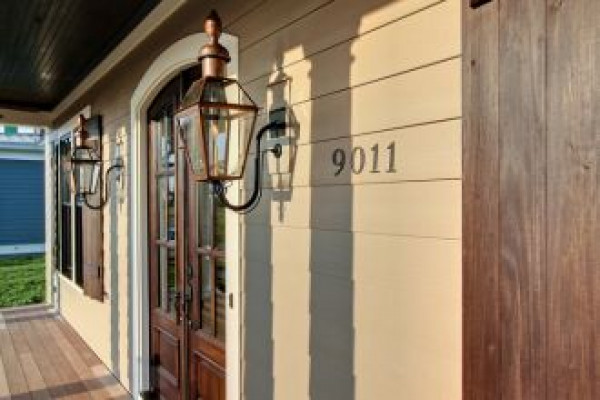Here is the front of our house that features the stunning Bevolo gas lanterns. We are in a new section of a planned development and on any given weekend, 15-20 cars drive by to take photos. Our home has been set apart from the surrounding houses by the gas lanterns that adorn our beautiful custom home. Thanks for all of your help!